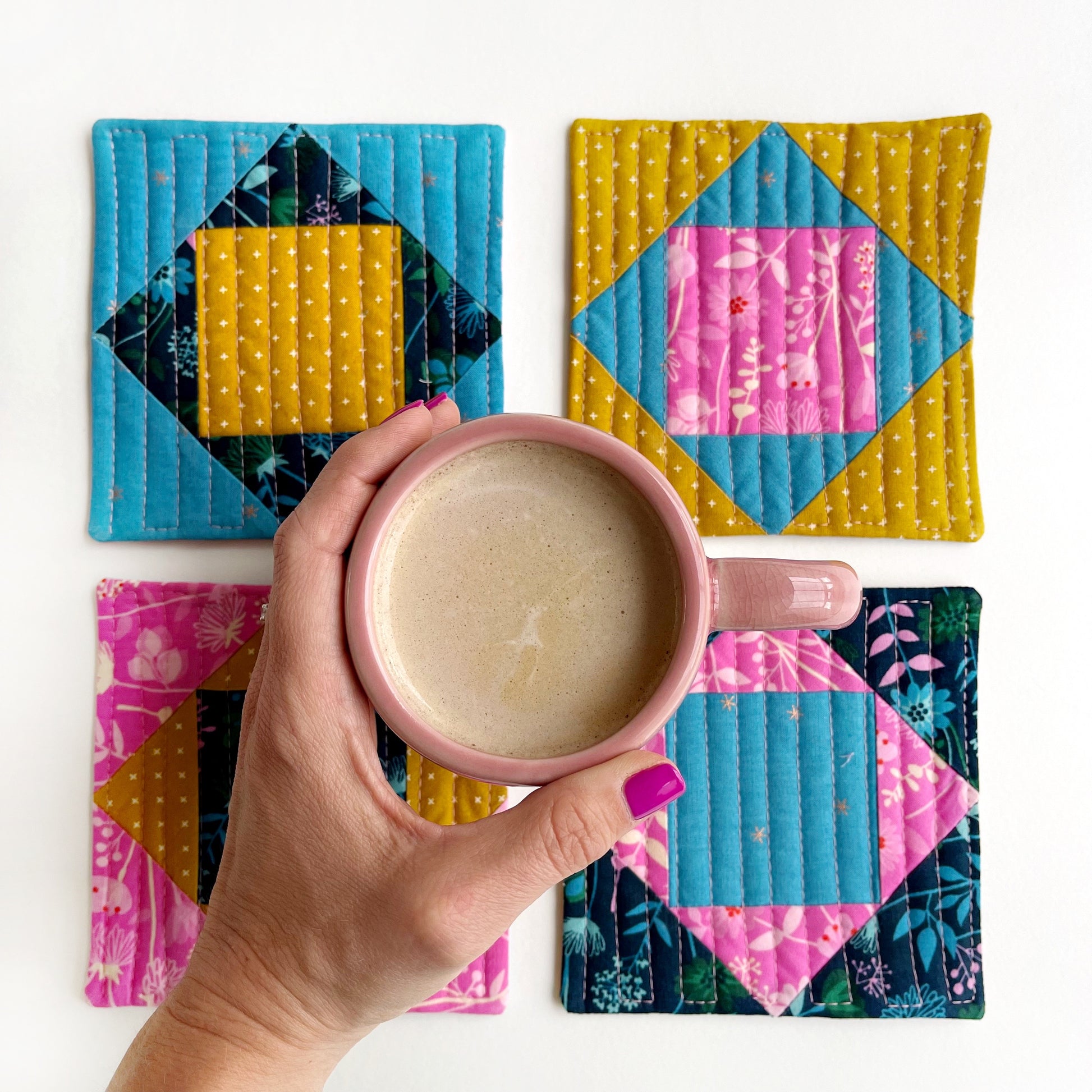 In association with fabric shop Sew Hot UK, I'm excited to bring you the Coffee Break Coasters pattern as part of my new Sewing Room Series.