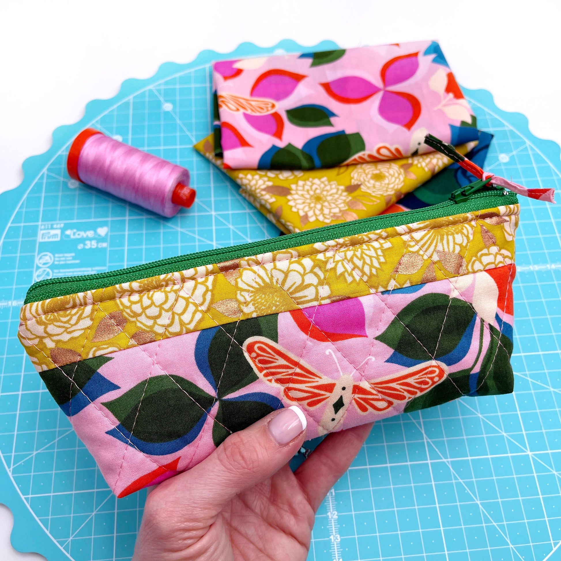 Every quilter needs to keep essential notions close to hand when sewing, and so why not do it in style with this gorgeous zipper pouch, that really is quick to make. It's ideal for beginners and with colour photos and detailed step instructions, you'll have your notions pouch ready to fill with sewing essentials in no time.