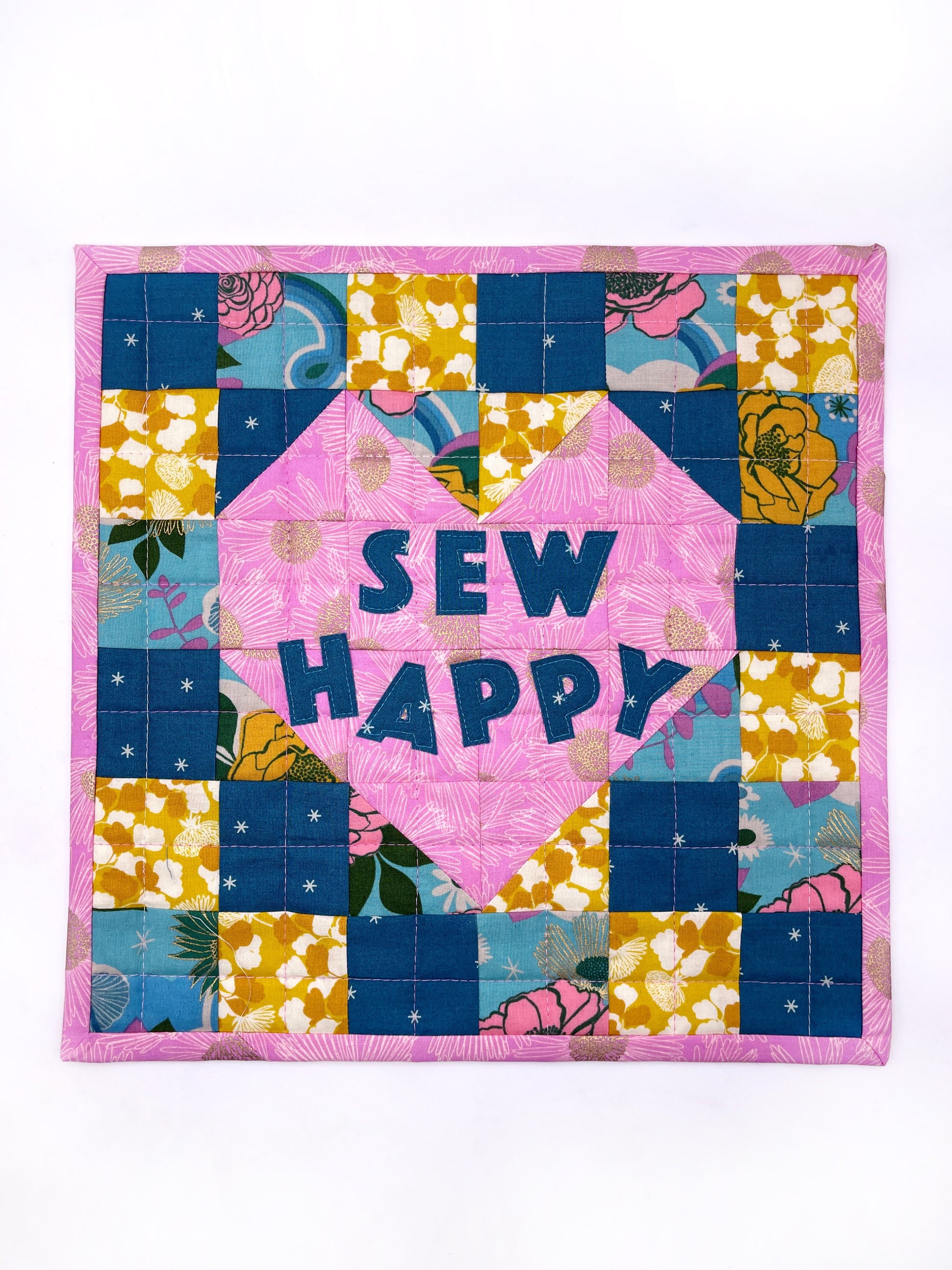 In association with fabric shop Sew Hot UK, I've created the 'Sew Happy' Mini Quilt as part of my Sewing Room Series!