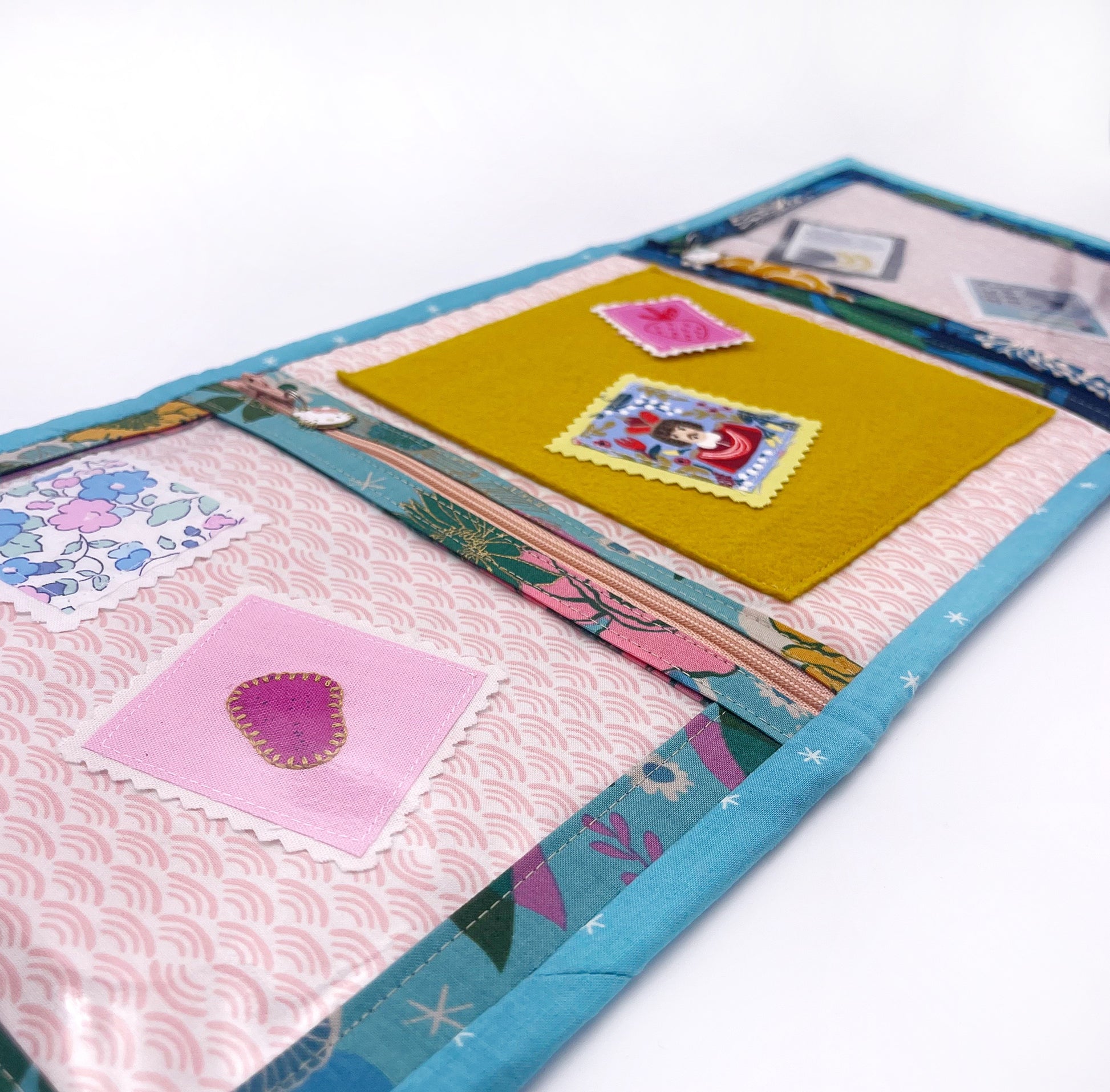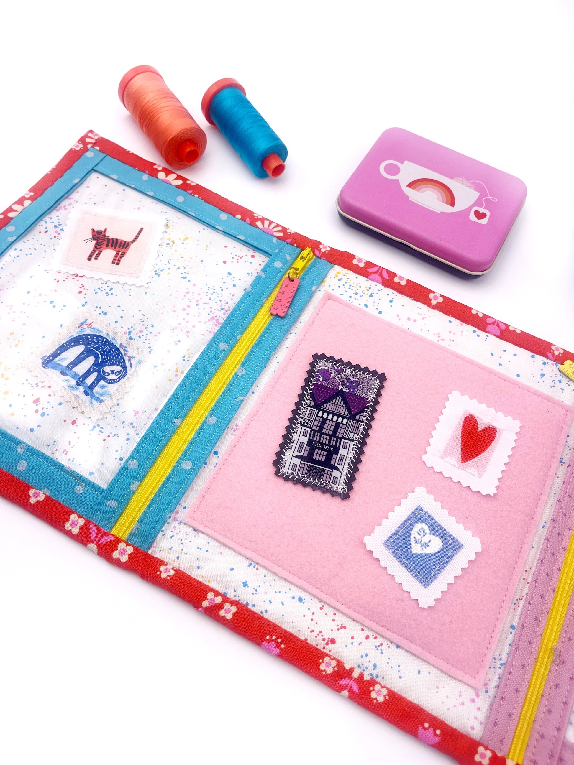 - A sturdy felt 'table' in the middle to showcase your stamps for swapping